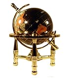 Best Price Unique Art 6-Inch by Black Onyx Ocean Mini Table Top Gemstone World Globe with Gold Tripod